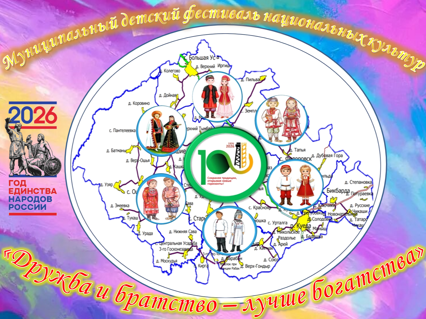 17 апреля в Центре дополнительного образования прошёл муниципальный детский фестиваль национальных культур «Дружба и братство — лучше богатства», посвященный 100-летию Куединского района, с целью сохранения и развития традиций различных национальных культур, проживающих на территории Куединского муниципального округа, формирования у детей и подростков уважения к национальным традициям и культурным ценностям разных народов.