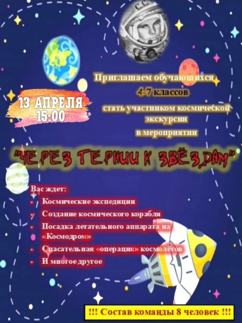 13 апреля в Центре дополнительного образования состоялось увлекательное мероприятие, посвящённое Дню космонавтики, — интеллектуально-практический квиз «Через тернии — к звёздам».