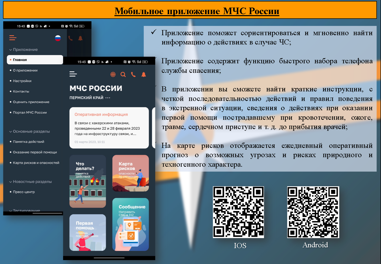 QR коды для скачивания Мобильного приложения  «МЧС России»