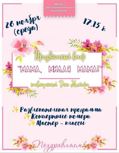 Особо красиво и незабываемо прошло мероприятие, посвященное этому Дню, в Центре дополнительного образования. На концерте обучающиеся дарили своим мамам, не только добрые слова и улыбки, но и специально подготовленные концертные номера.
